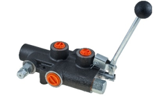 s tlakově zatížitelným výstupem N s možností sériového zapojení, průtok 40 l/min, provozní tlak max 300 bar. Obě sekce jsou dvoučinné. Rozvaděč je opatřen seřiditelným pojišťovacím ventilem. Ve vstupu P zabudovaný zpětný ventil pro ochranu čerpadla před případnými tlakovými rázy. Možné dodání ve variantě s aretací, nebo plovoucími polohami.
