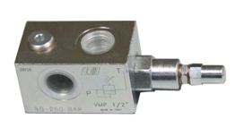 Chrání hydraulický systém při tlakovém přetížení, tím že uvolňuje přebytečný tlak do odpadní nádrže. U tohoto typu ventilu je možné manuálně nastavit požadovaný maximální tlak v rozsahu např. 50-250 bar.