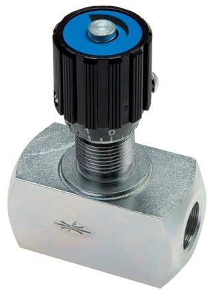 Tento ventil se používá ke průtoku v obou směrech. Přiškrcení daného množství oleje je závislé na teplotě, viskozitě a tlaku oleje. Těleso ventilu je vyrobeno z pozinkované oceli, vnitřní části jsou kalené a broušené. K nastavení ventilu s používá regulační kolečko, které bývá často vyrobeno z plastu, ale je dostupné i v kovové variantě. K regulování proudu uvolníme aretační šroub v kolečku a otáčením ovladače regulujeme průtok. Nakonec pomocí aretačního šroubu zajistíme nastavení v požadované poloze.